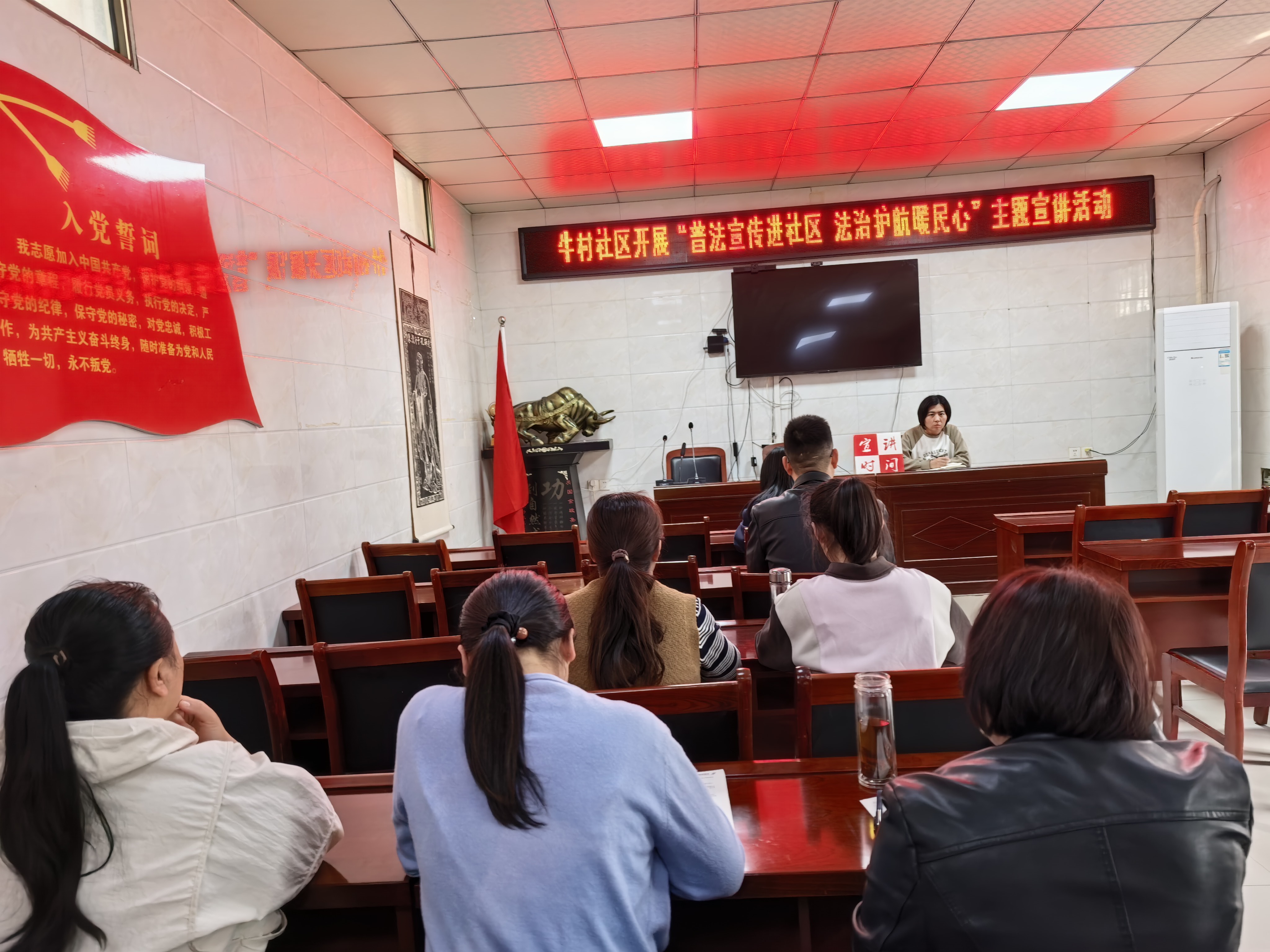 为进一步增强居民法治意识,营造尊法学法守法用法的良好社区氛围,近日,牛村社区组织开展普法宣传主题宣讲活动,把法律知识送到居民家门口,用法治力量守护群众平安幸福。