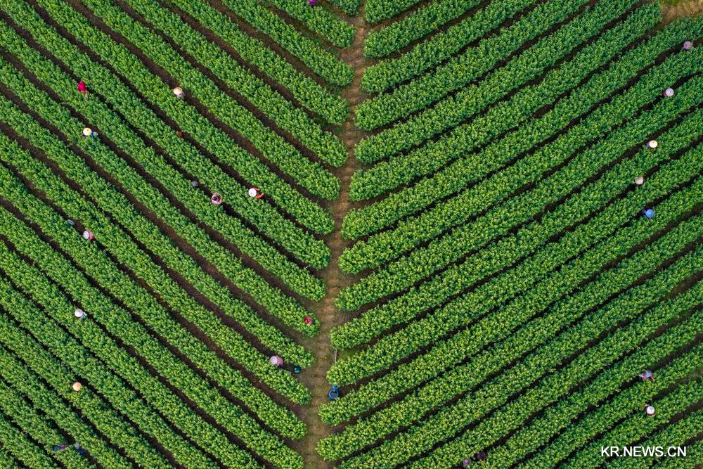 [신화망베이징4월12일]기온이올라가면서중국각지농민의손길이분주해졌다.11일저장(浙江)성위타오(餘姚)시에위치한한차밭에서찻잎을따는작업자들을드론으로내려다봤다.2026.4.11원문출처:신화통신한국어뉴스서비스