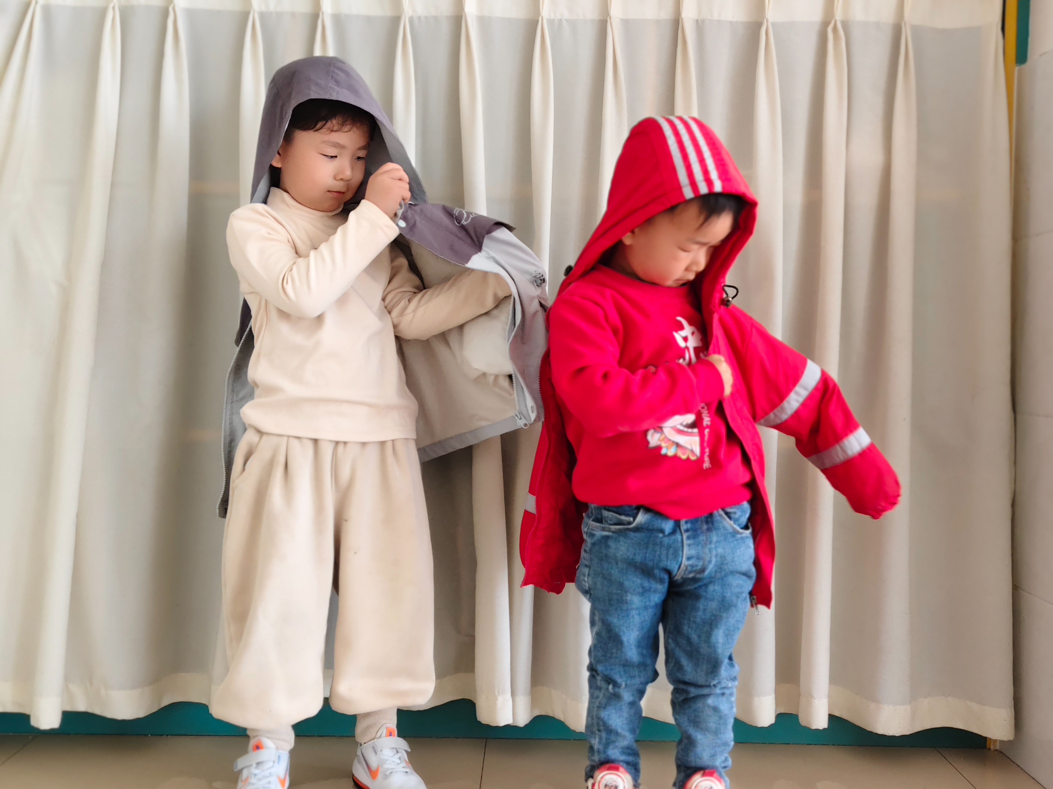 中班幼儿开展“穿衣小能手”“整理小达人”比赛,规范叠衣服、摆碗筷等动作,体会“我能做到”的成就感,逐步养成有序、整洁的生活习惯。