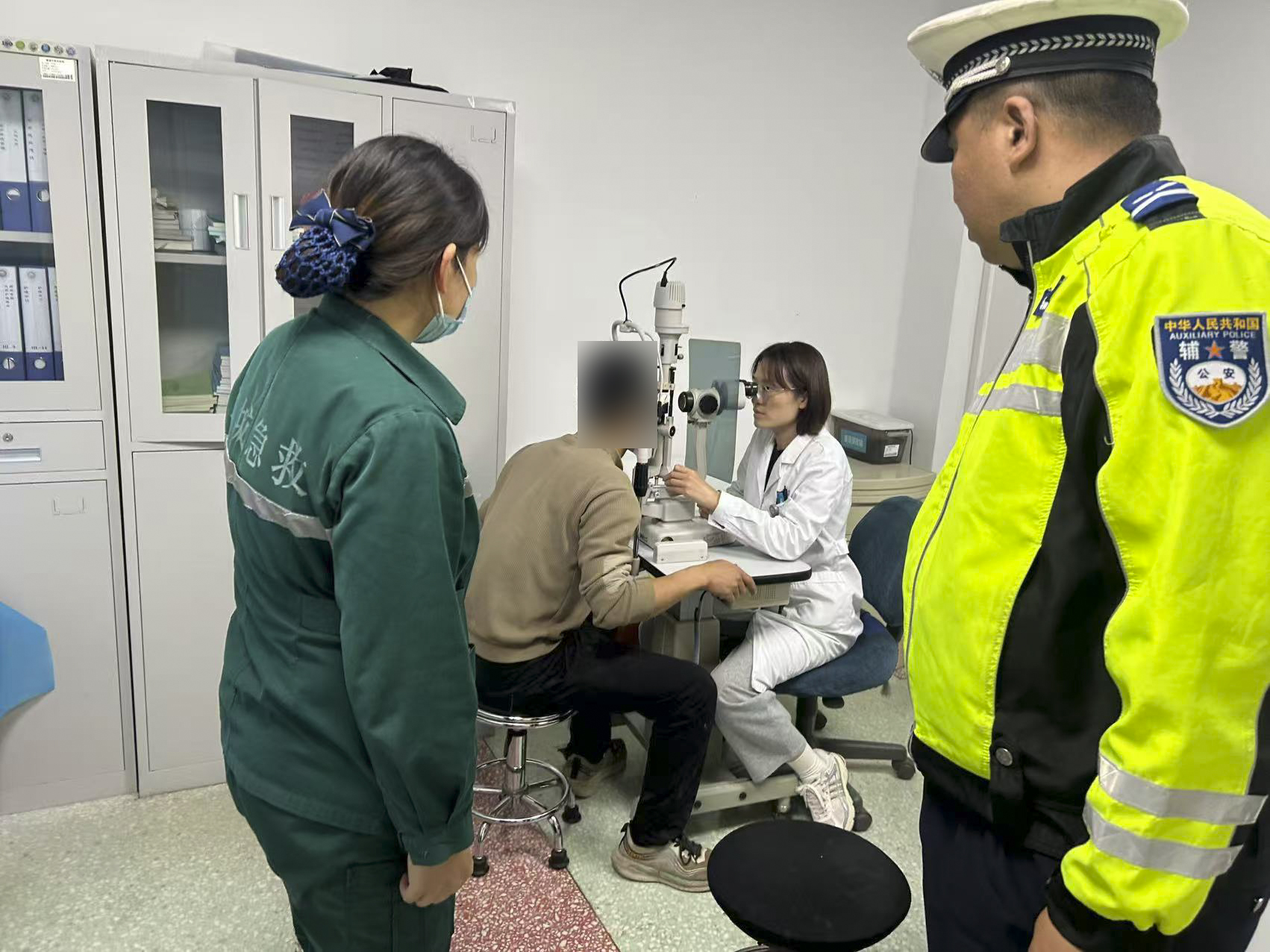 急!玻璃崩到眼睛了,东昌府交警争分夺秒护送就医