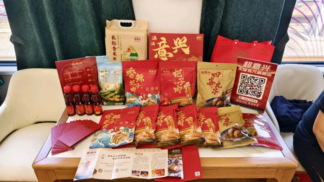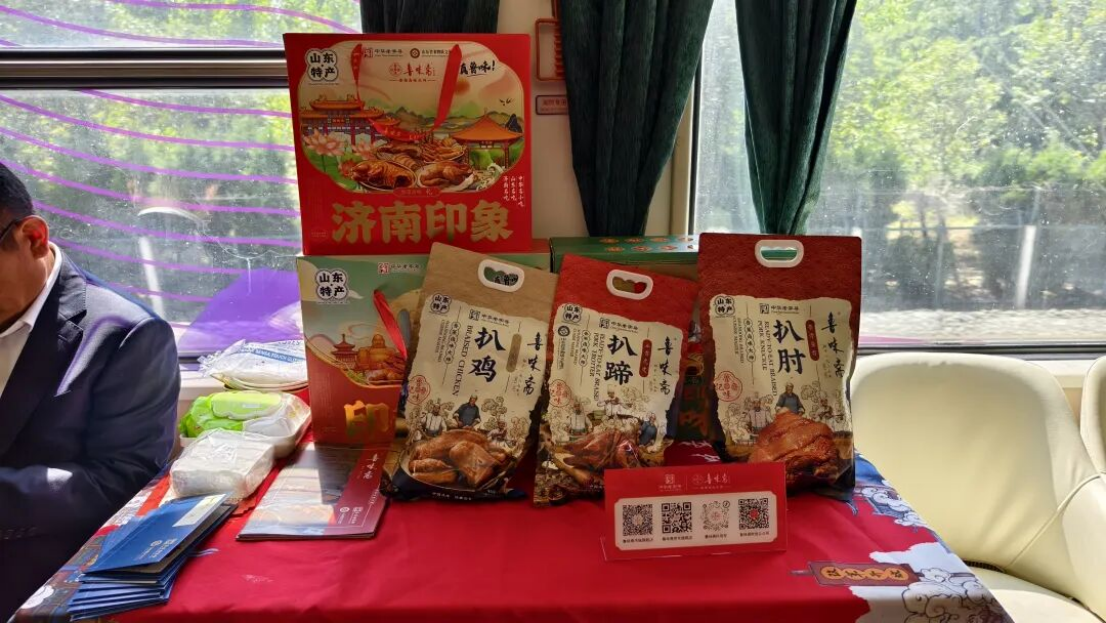 超意兴带来了山东省非物质文化遗产——把子肉,搭配长粒香米、玉米面糊糊和特色粮油,让旅客在列车上就能品尝地道的“济南味道”。