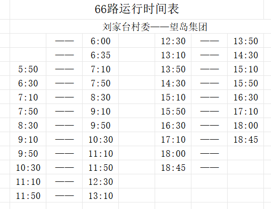 本次新开通的66路公交线路,起讫点为望岛集团至刘家台村委,核心作用是填补望岛至温泉区域的公交出行空白,精准串联周边多个生活片区。