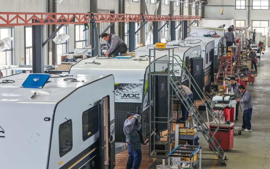 当下,在荣成经济开发区房车制造产业基地内,新能源房车生产线开足马力,工人加紧组装赶制订单。作为国内最大房车生产与出口基地,荣成8家规上房车企业、50余家配套企业协同发力,产量占全国30%、出口量占50%。