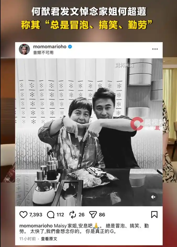 何猷君发文悼念姐姐何超蕸,称其“总是冒泡、搞笑、勤劳”潇湘晨报 2026-04-13 10:48:384月12日,何猷君 @何猷君MarioHo 在社交媒体发文悼念二房姐姐何超蕸,称其“总是冒泡、搞笑、勤劳”的家姐,并深情表示“我们会想念你的,你是真正的G”。据悉,何超蕸生前担任信德集团执行董事,是赌王何鸿燊与二太蓝琼缨之女,家人证实其临终时亲属陪伴在侧。(潇湘晨报)责任编辑:崔可腾