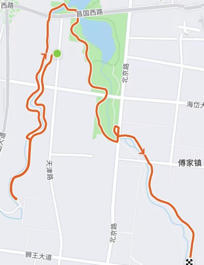 从天津路范阳河绿道入口,沿范阳河东侧绿道公路向南3公里,掉头经范阳河东侧道路,向北1.3公里处左拐过桥至范阳河西侧绿道,沿范阳河西侧绿道向北,过昌国路后向南经过孝妇河桥,继续沿孝妇河西侧环湖绿道向北至北京路,沿北京路辅路向北200米至孝妇河东南门,从孝妇河东南门进入内部路沿规划道路至孝妇河东侧绿道,沿孝妇河东侧绿道向南至华福大道孝妇河大桥,经西侧桥下小路过桥,过桥后继续沿孝妇河东侧绿道向南至孝妇河骑行公园西门停车场处。