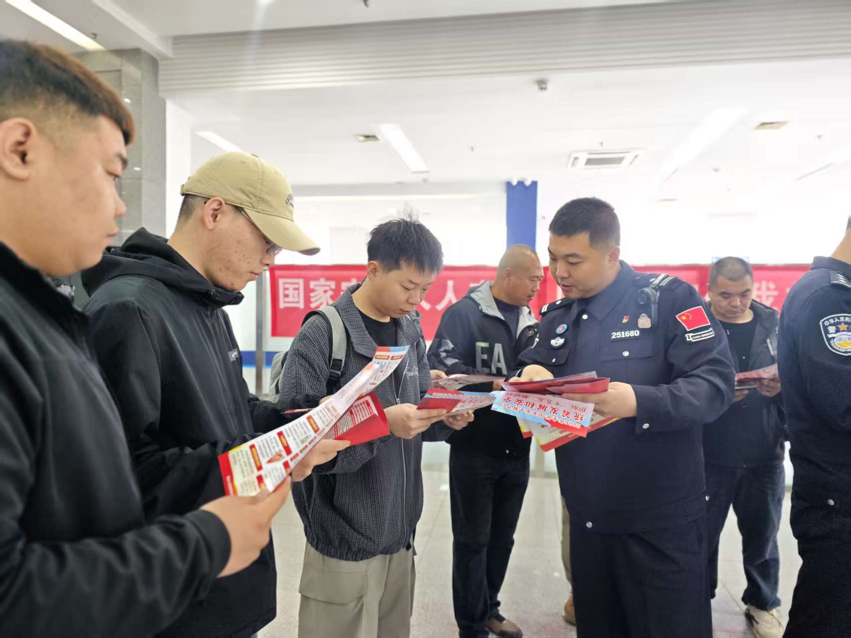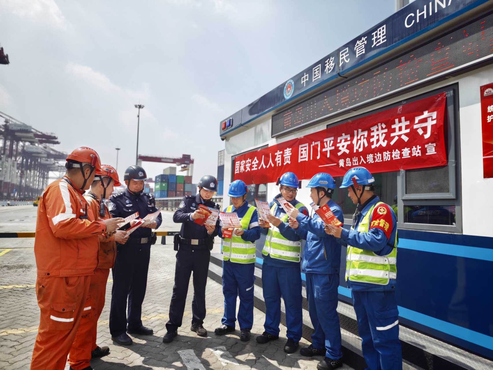 在“4·15”全民国家安全教育日来临之际,山东出入境边防检查总站黄岛边检站民警深入青岛港码头、船员换班中心,将国家安全知识送到一线作业人员身边,用接地气的宣传方式,筑牢国门安全“防护网”。