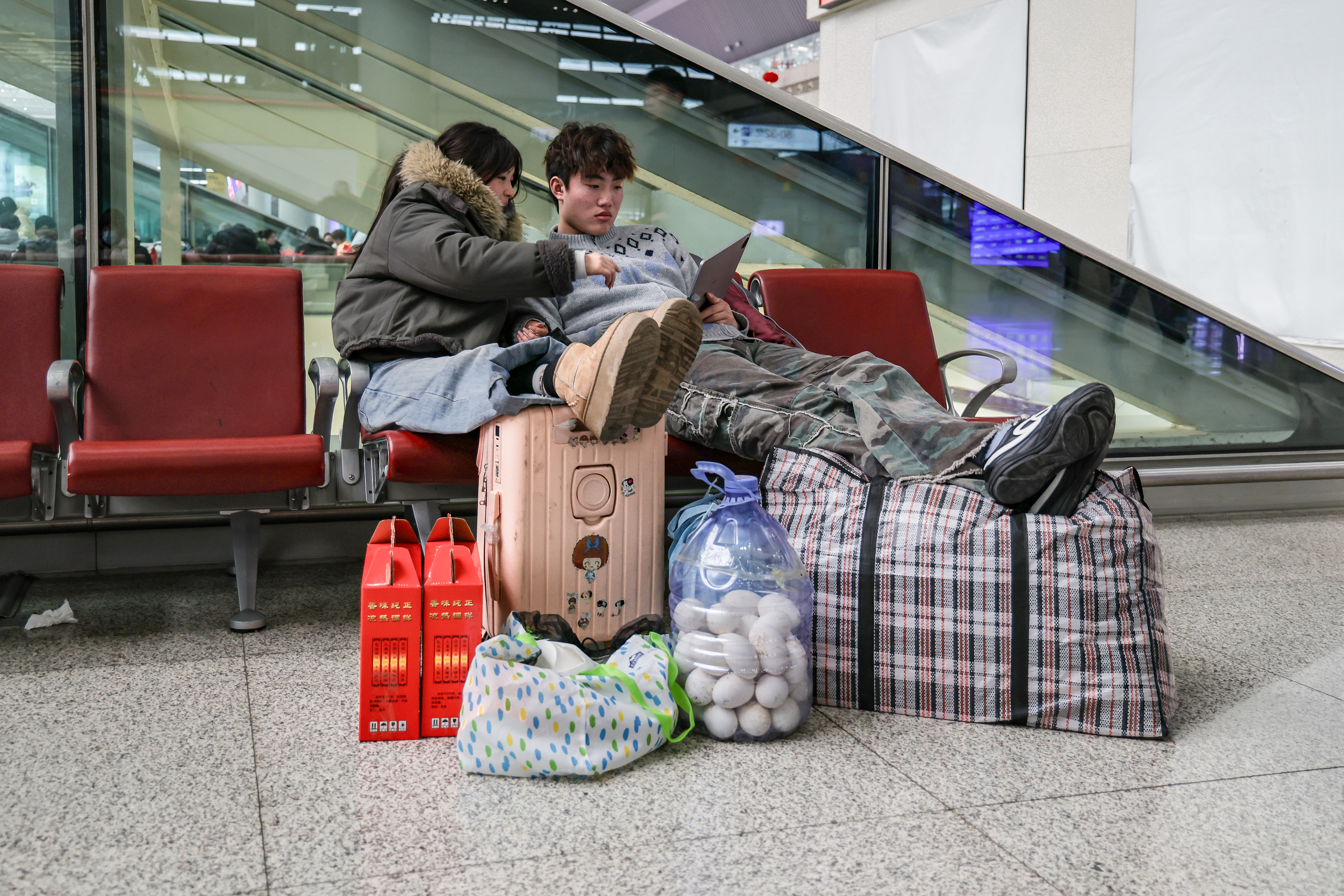 作品说明:这组照片是春运期间,我在候车厅或列车上捕捉的生活切片,没有刻意寻找宏大场景,把镜头对准这些细碎的瞬间——行李箱上的贴纸,桶装鹅蛋的牵挂,他们都是春运最鲜活的注脚。人潮虽挤,却处处是暖意,是奔赴团圆的期盼,是暂别的不舍,是平凡日子的生活温度。