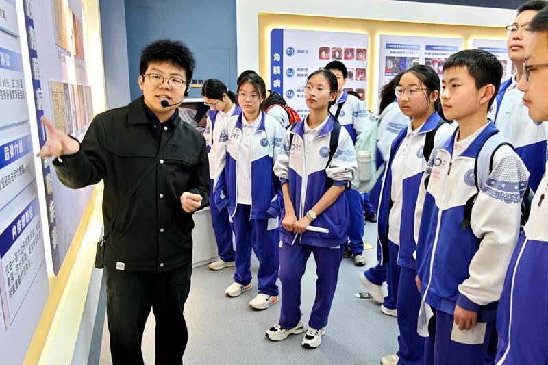 活动伊始,同学们来到山东眼科博物馆与科技馆。馆内丰富的展品和先进的科普设备,让大家直观了解眼睛构造、近视成因及科学护眼方法。在专业讲解员引导下,同学们认真观察古代眼科诊疗器具,踊跃体验近视防控互动装置,纷纷表示要从当下做起,养成良好用眼习惯,守护心灵之窗。这一环节不仅达成学校近视防控教育目标,更将健康意识深植学生心中。