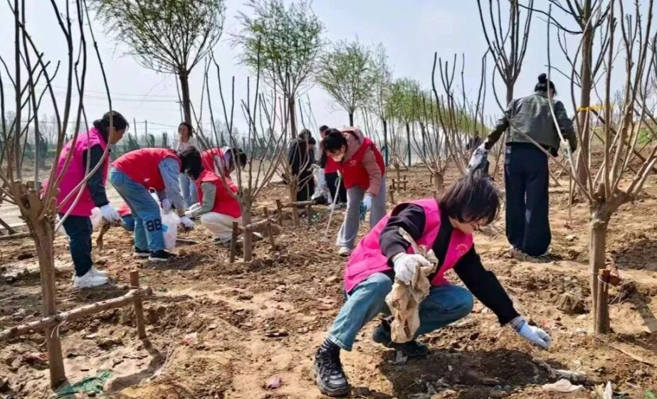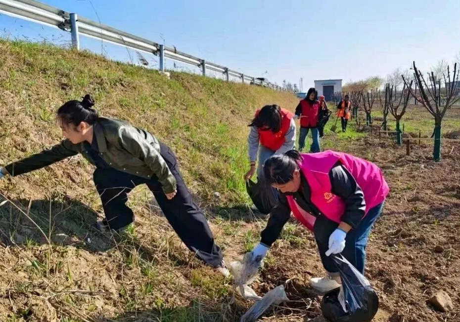 活动现场,志愿者们身着统一志愿服装,手持垃圾夹、垃圾袋、铁锹等工具,沿着辖区河道沿岸及堤坝区域有序开展清理行动。