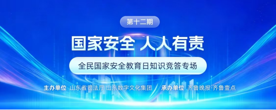 2026年4月15日是第十一个全民国家安全教育日。在数字化浪潮深度渗透社会生活的今天,传统安全与非传统安全风险相互交织,网络窃密、间谍渗透、数据泄露、粮食安全等隐患不容忽视。为深入贯彻落实总体国家安全观,切实增强全民国家安全意识和法治素养,由山东省司法厅、山东数字文化集团主办,齐鲁晚报·齐鲁壹点承办的“法润齐鲁·e起学”数字普法平台即日起推出“国家安全 人人有责”全民国家安全教育日知识竞答专场。