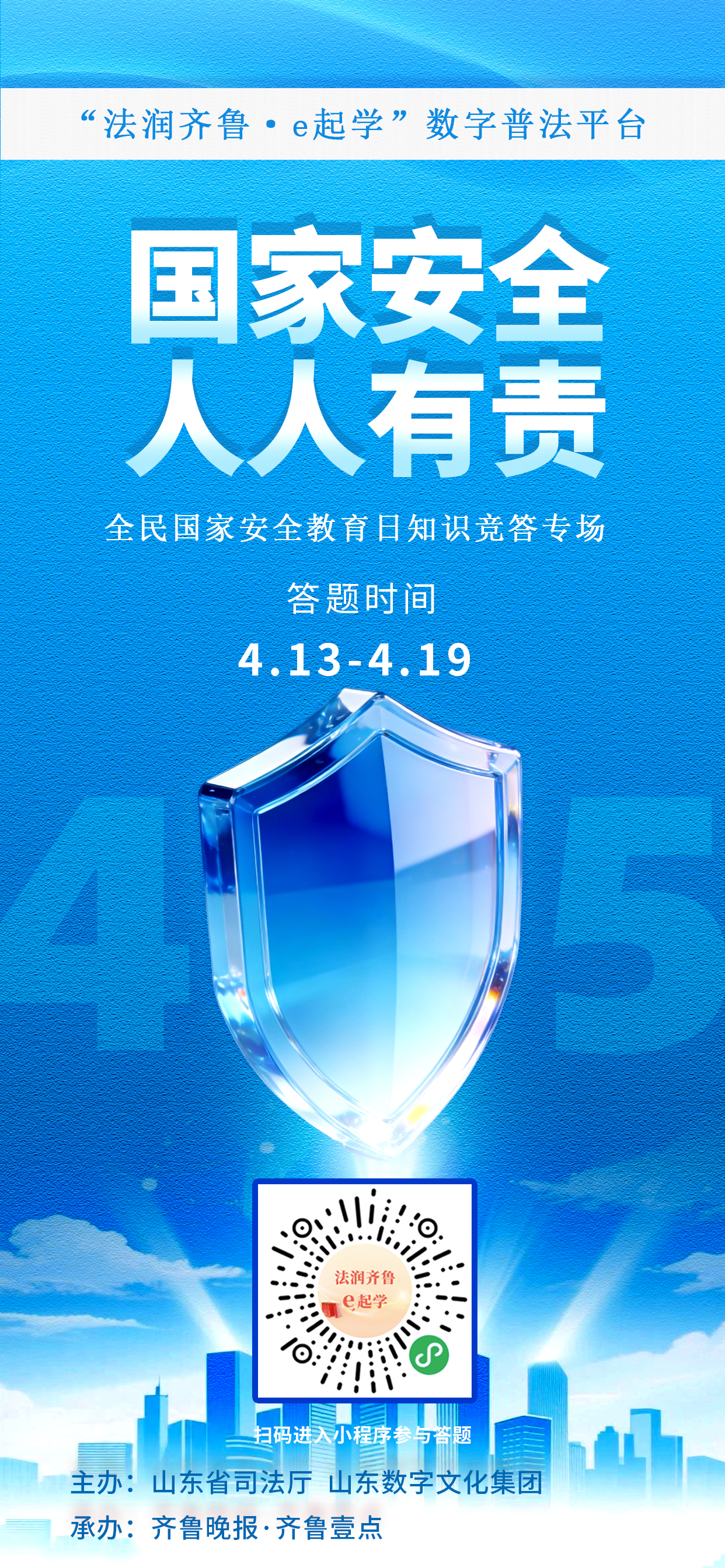 “法润齐鲁·e起学”全民国家安全教育日知识竞答今日上线
