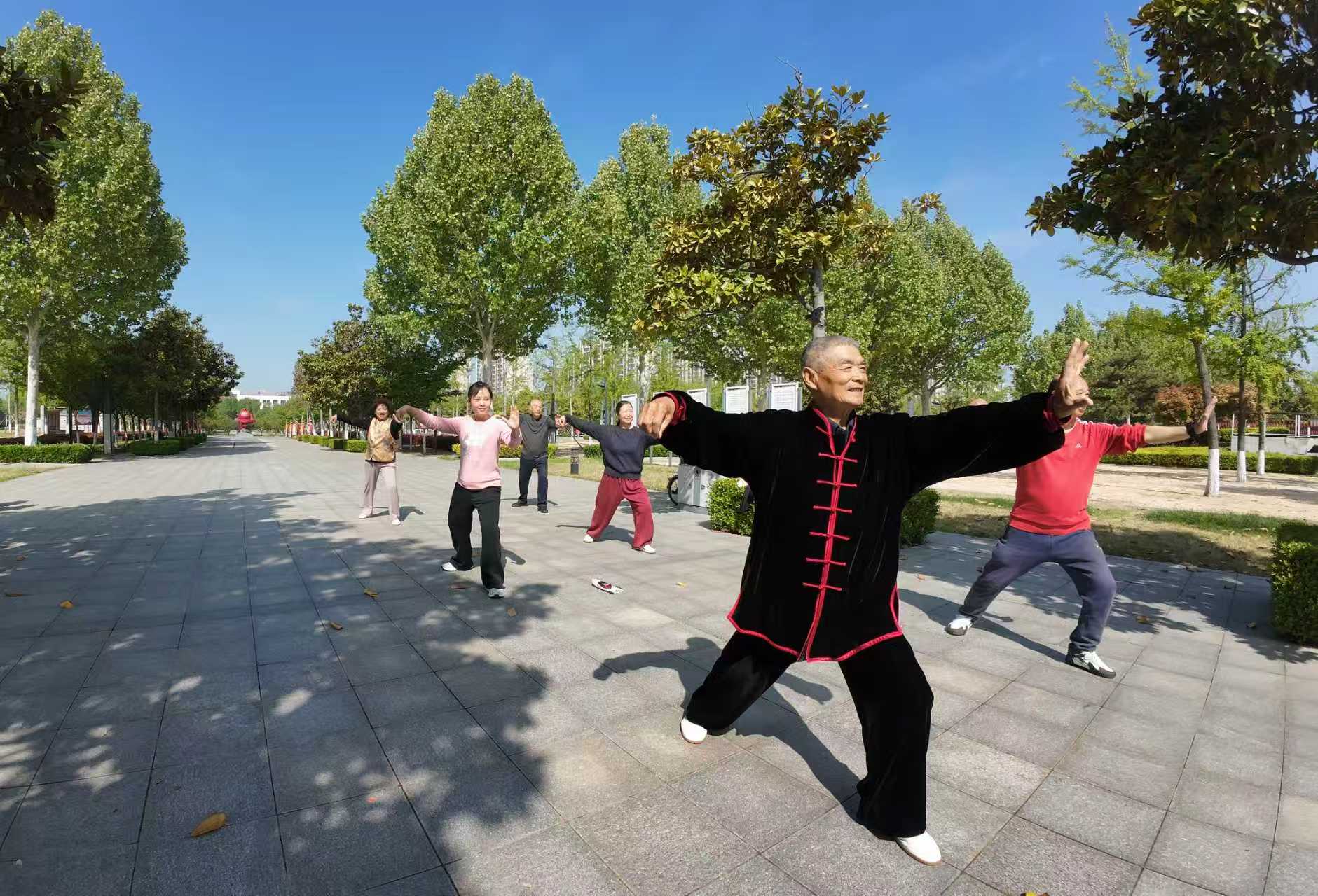 六人中,两人已进入耄耋之年,一位曾是教学能手,风度儒雅,是全组的教练,一位是退休干部;有三位退休不久,他们的职业曾是电业工程师、高中语文老师、和卫生战线的白天天使;还有一位女青年,985名校的研究生,她明眸皓齿,亭亭玉立,自创办一个科技公司,在其任职。六人尽管年龄、经历、职业相异,但他们共同喜爱传统文化,喜欢背诵古诗词,还共同热爱打太极。可以说,因太极和古诗词结缘,兴趣契合,既是天天相伴的拳友,亦是心意相通的文友。六人沐浴着温馨的春光,身着轻便的练功服,看着河里微波,听着树上的鸟鸣,伴随着美妙悦耳的练功曲,开启每日奏响练拳的乐章。