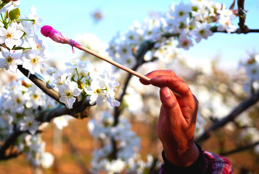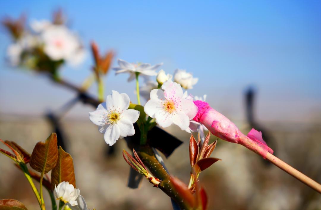 近日,记者走进房寺镇家宜家庭农场秋月梨梨园,只见一朵朵洁白梨花竞相绽放,果农们手持授粉工具,穿梭于梨园行间,细心为梨花授粉,每一次精准操作,都为秋日硕果累累埋下伏笔。人工授粉不仅能有效提高坐果率,更能提升果实品质,为丰产增收筑牢根基。