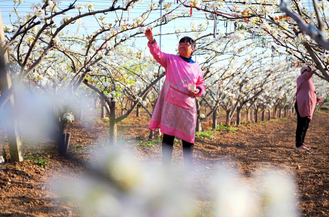 春风送暖,梨花似雪。眼下正值秋月梨树盛花期,也是人工授粉的“黄金窗口期”。在禹城市房寺镇“两河润禹”衔接乡村振兴集中推进区孙延村的秋月梨果园里,繁花满枝、清香四溢,果农们全家齐上阵,抢抓晴好天气开展人工授粉,田间地头一派繁忙劳作景象。
