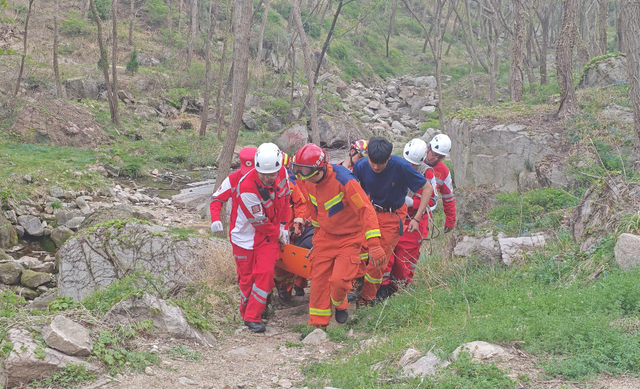 4月11日12时43分,青岛市消防救援支队指挥中心接到报警,铁山沟一男子崴脚被困山上,海尔大道消防救援站迅速赶赴现场进行处置。