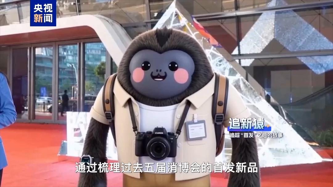 这是消博会吉祥物海南长臂猿“宵宵”,装载AI“龙虾”,变身“追新猿”。