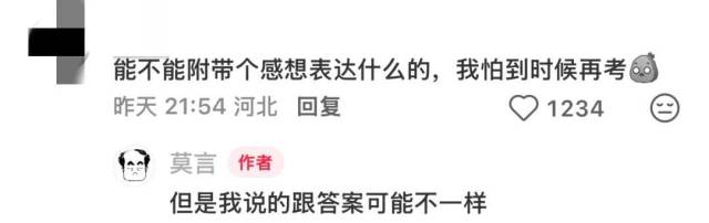 更有网友预言,这本新书的内容可能会成为考题,希望莫言先把答案写好。