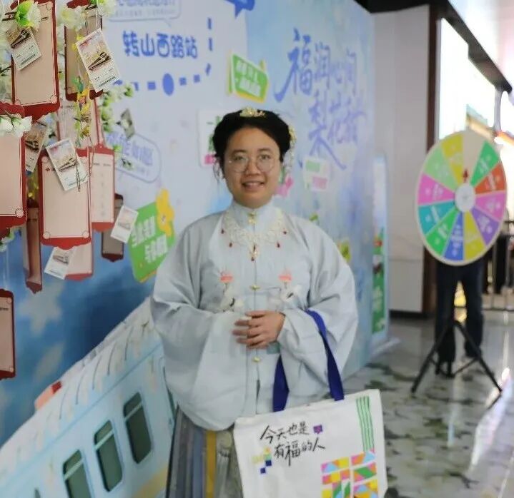 五个站点,五种花语,五重公益心意。五里牌坊站的樱花树上,桃符上写满了“考研上岸”“健康平安”等小小心愿;转山西路站的梨花树前,对诗声此起彼伏,年轻人争相说出“吹面不寒杨柳风”;汉峪金谷站的迎春能量墙上,大家举着桃符写下“我要发光”“向阳而生”;安成街站的海棠市集微景观,随手一拍就是电影感,不少乘客停下脚步;奥体中心站的白玉兰集结台,则是所有集章达人的终点站,领到礼盒的人笑得比春花还灿烂。每个站点不仅有自己的主题花卉,还分别对应了福彩“扶老、助残、救孤、济困”的公益理念和“百千万”青年创业帮扶举措,这些原本严肃的主题,变成了一枚樱花钥匙扣、一枚梨花徽章、一只福气满满的挂件,被参与者们开开心心地带回了家。
