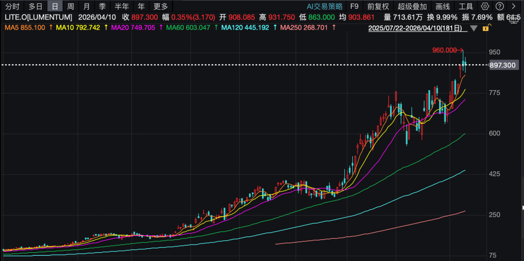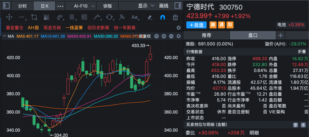 13日早盘,A股小幅震荡,主要股指涨跌互现,创业板指继续保持强势,再创4年半新高,深证成指、科创综指等微幅飘红,上证指数、北证50等则微幅飘绿。下跌个股远多于上涨个股,成交呈小幅萎缩趋势。盘面上,CPO概念、养殖业、次新股、业绩预增等板块涨幅居前,游戏、体育、航运港口、动物保健等板块跌幅居前。宁德时代创历史新高宁德时代AH早间联袂创历史新高(复权),A股一度大涨逾4%,每股最高摸至433.33元;H股一度突破700港元/股,AH市值合计近2万亿元。地缘冲突凸显能源转型紧迫性,我国新能源汽车出口快速增长。乘联分会数据显示,2026年一季度,新能源汽车出口95.4万辆,同比激增120%。电池出口方面,中国汽车动力电池产业创新联盟发布的最新数据显示,今年3月,我国动力和储能电池合计出口36.1GWh,环比增长51%,同比增长57.1%。其中,动力电池出口量为22.3GWh,占总出口量61.7%,环比增长31.9%,同比增长60.2%;储能电池出口量为13.8GWh,占总出口量的38.3%,环比增长96.9%,同比增长52.4%。在行业高速发展的同时,电池企业集中度也明显提升。根据中国汽车动力电池产业创新联盟统计数据,3月,我国新能源汽车市场共计31家动力电池企业实现装车配套,较去年同期减少10家。排名前2家、前5家、前10家动力电池企业动力电池装车量分别为35.8GWh、45.4GWh和52.9GWh,占总装车量比分别为63.3%、80.3%和93.6%,前10家占比较去年同期增加0.73个百分点。作为电池行业龙头,宁德时代无疑成为最大受益者之一。日前公布的年报显示,2025年,其实现营收4237亿元,同比增长17.04%;净利润722亿元,同比增长42.28%。平安证券表示,2026年,在能源转型的趋势下,全球动力和储能锂电池需求有望继续增长。看好宁德时代作为全球锂电池领先企业的技术研发和成本控制优势,以及在固态电池等新兴领域的前瞻性布局,维持“强烈推荐”评级。CPO概念连续创历史新高CPO概念早间低开高走,板块指数再创历史新高,瑞斯康达开盘仅约4分钟直线涨停,华盛昌也仅约10分钟封板,今年以来飙升逾176%,科瑞技术则5日3涨停,红板科技、优迅股份、泰晶科技等纷纷涨停或涨超10%。Wind实时监测数据显示,CPO概念近来持续获得主力资金净流入,近5个交易日获得逾255亿元净流入。仕佳光子等11股早间均获得超1亿元净流入。消息面,上周末,美股光通信龙头Lumentum首席执行官迈克尔·赫尔斯顿表示:“美国几家超大规模云厂商的资本开支规模极其庞大,而且看起来完全没有放缓的迹象。我们的产能正越来越跟不上需求。如果按目前趋势发展,再过两个季度,我们到2028年全年的产能就会彻底售罄。”赫尔斯顿认为,目前来看,这一轮行业周期至少还能维持5年左右的景气持续性。Lumentum股价在2025年飙涨339%的基础上,今年以来再度大涨逾143%,短短1年多的时间,股价由每股约84美元飙升至最高960美元,累计涨幅超10倍。根据LightCounting的最新数据,光模块市场2025年全球销售额接近180亿美元,同比增长约70%;2026年预计仍将保持60%的高速增长。在中性预期下,2031年全球市场规模将接近600亿美元,对应复合年均增长率超过20%。方正证券亦持乐观态度,表示持续看好高速光模块市场受益于北美云服务商2026年资本开支的高投入,巨大的AI算力训练与推理需求驱动AI算力集群网络端部署,国内相关高速光模块企业有望维持高行业景气度。