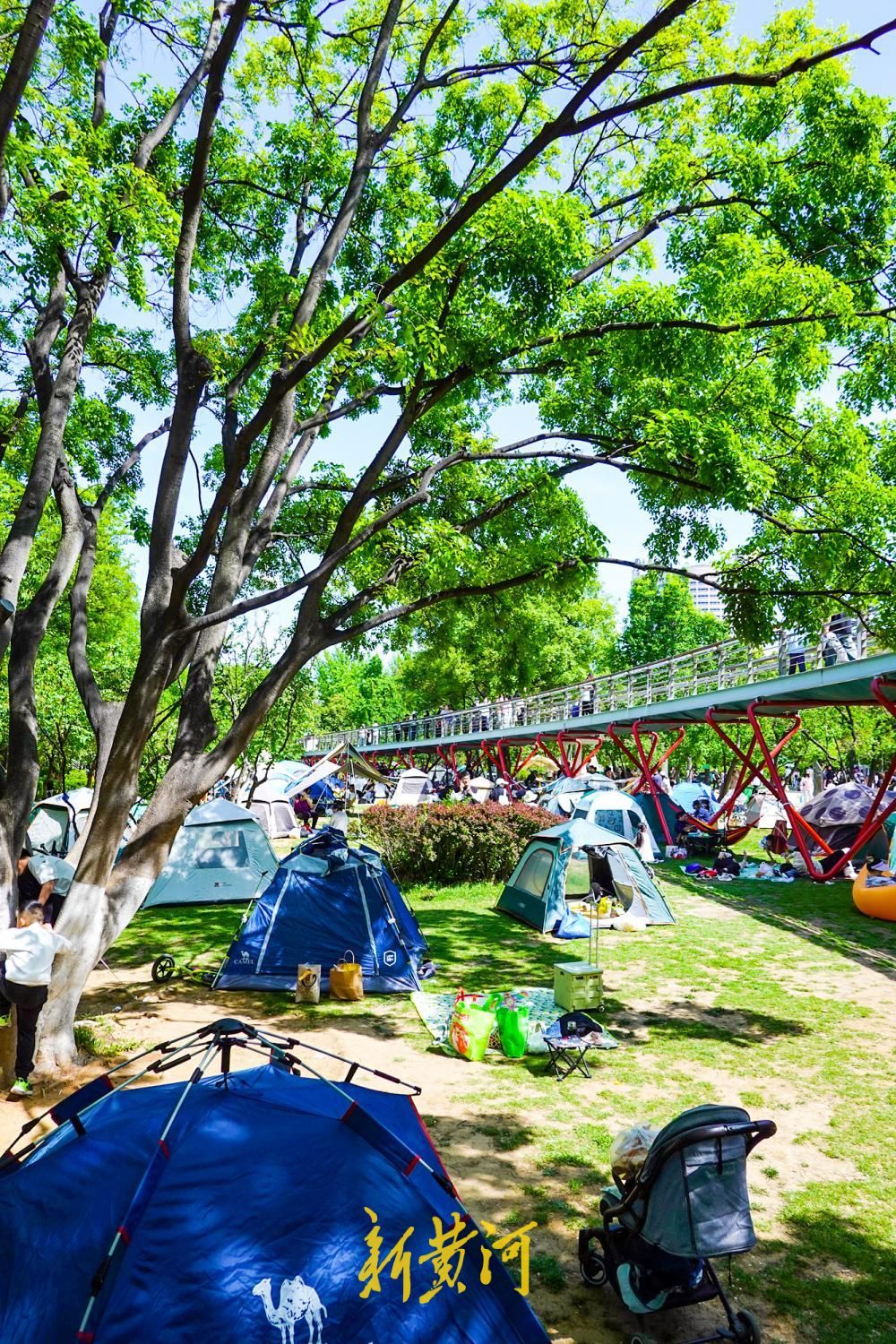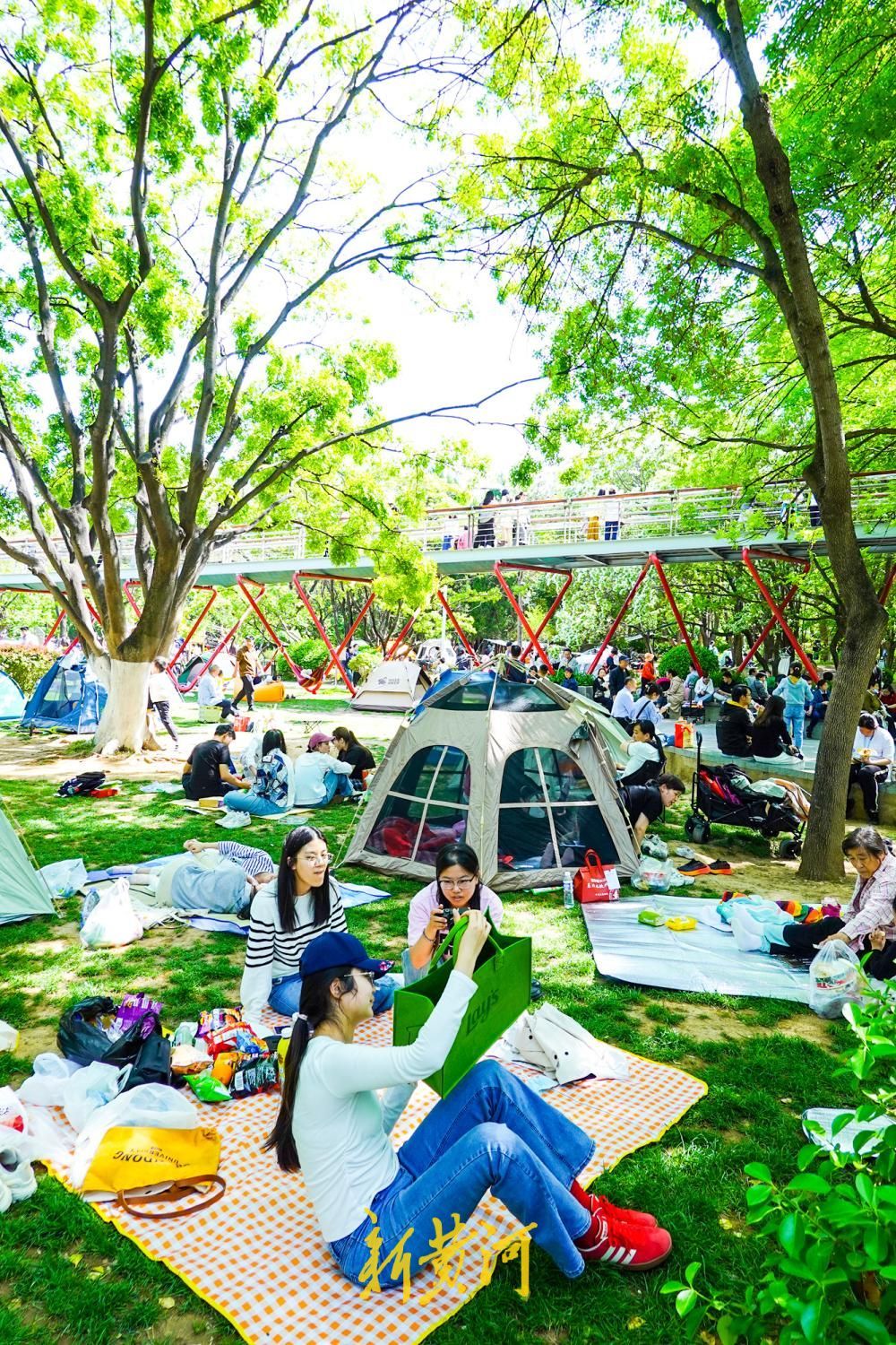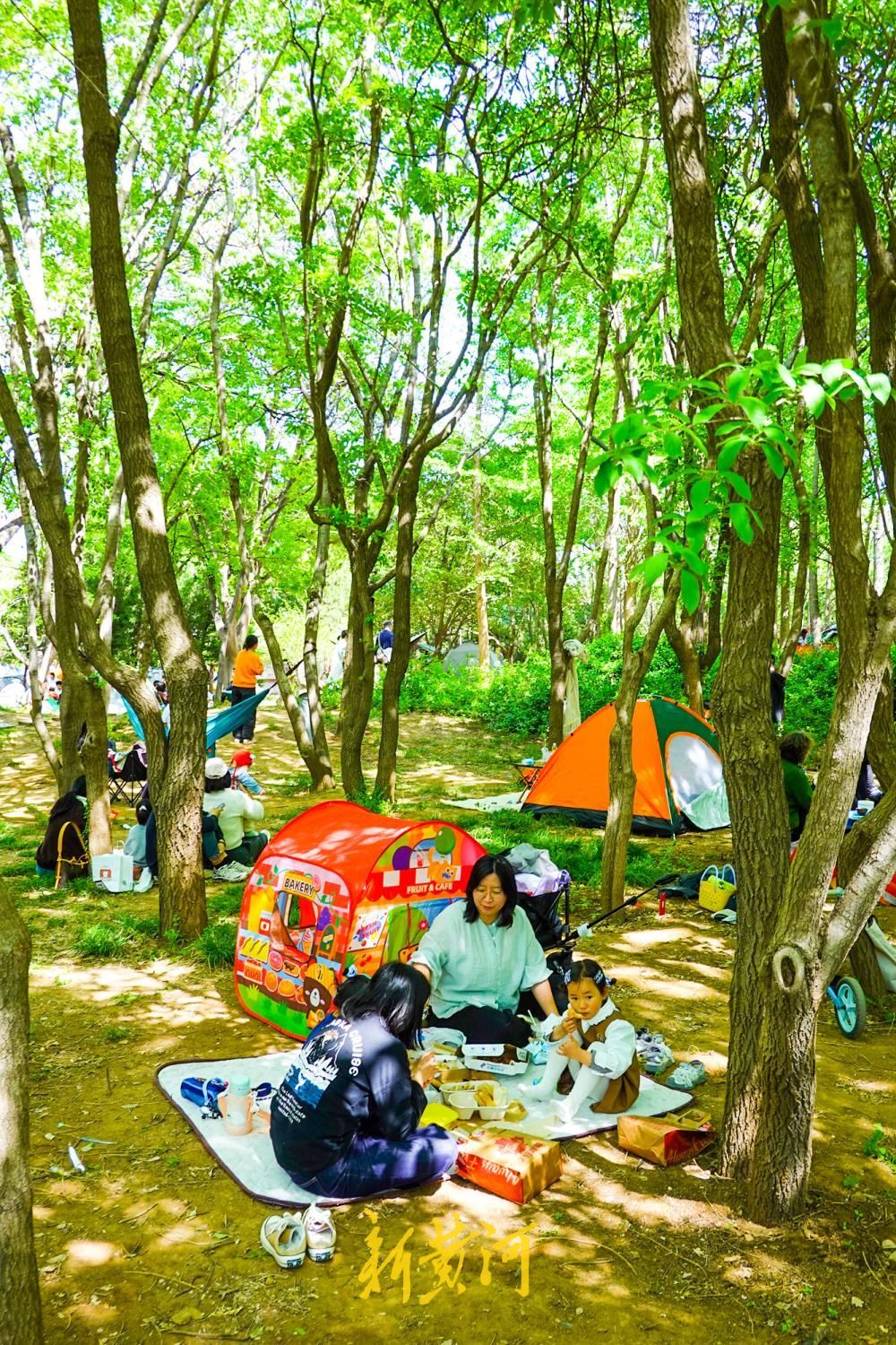 仲春公园迎来济南露营热 草地变身“户外客厅”