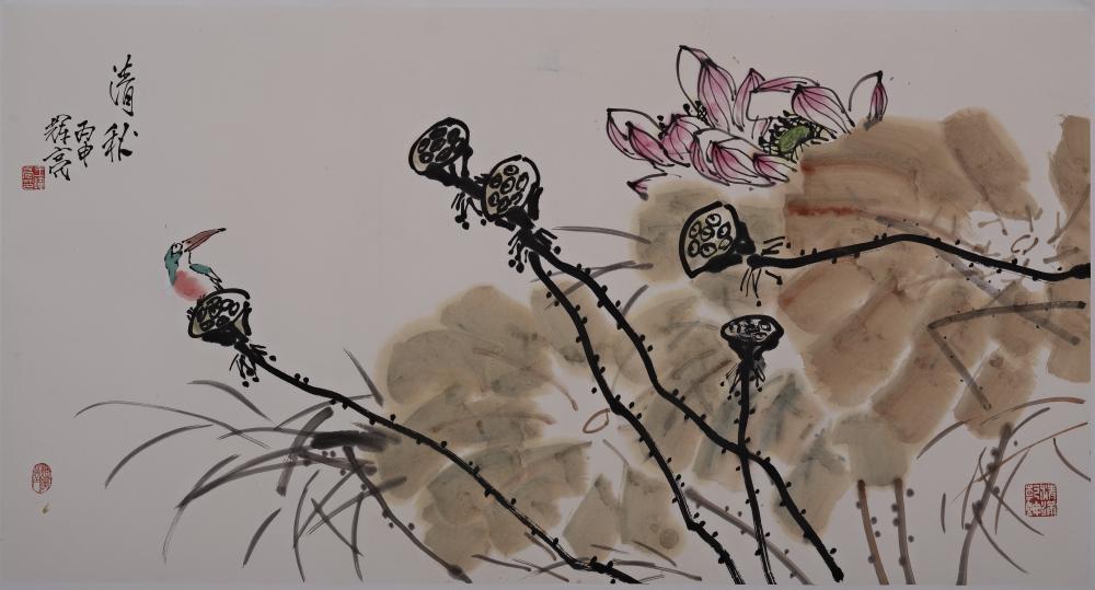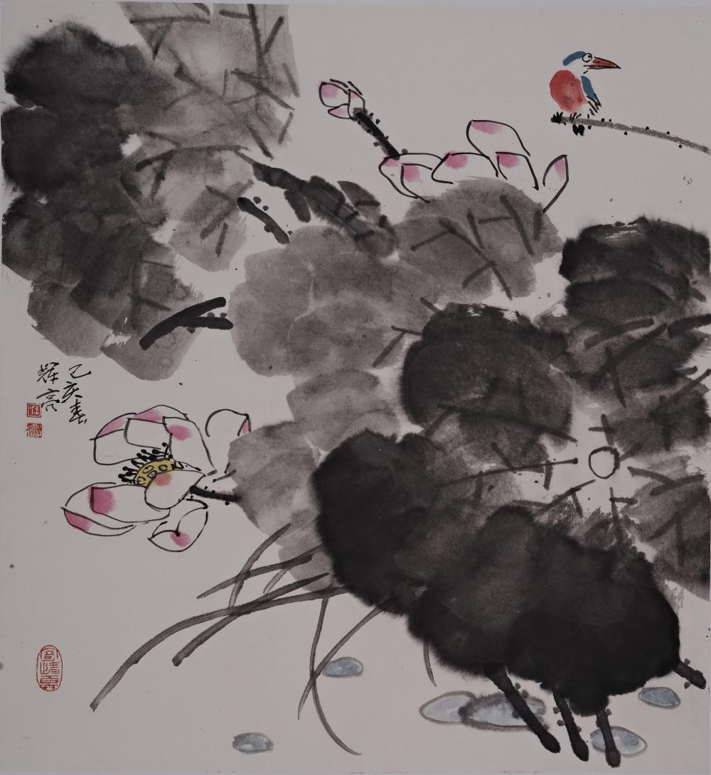 他的画看似平淡,朴实,没有太多的夸张、奇绝、铺张、只是淡淡地挥洒,慢慢地写来,好像老友对语,书生写字一般。一花一木,一笔一墨,悠然地,自在地从他的那杆秃笔里流淌出来。这便是先生的画风,从他的画里明眼人自能品咂出他是把石涛、八大、吴昌硕、齐白石、潘天寿,掰开了揉碎了,然后和着他的才情不瘟不火地挥霍在他的平淡里,这种平淡里散发着一股淡雅之气,清新之气,这种清新之气沁人心脾,古人所谓:“洁如霜雪,清如水碧”先生的画境有此意思。他画荷花、牡丹、梅花之外,还好画竹,竹子“未出土时便有节,至凌云处还虚心”。画来画去,自然以虚受益、养心,人也“操坚节实”,从而养就了寿者之质,使先生自然享有了耄耋之寿。