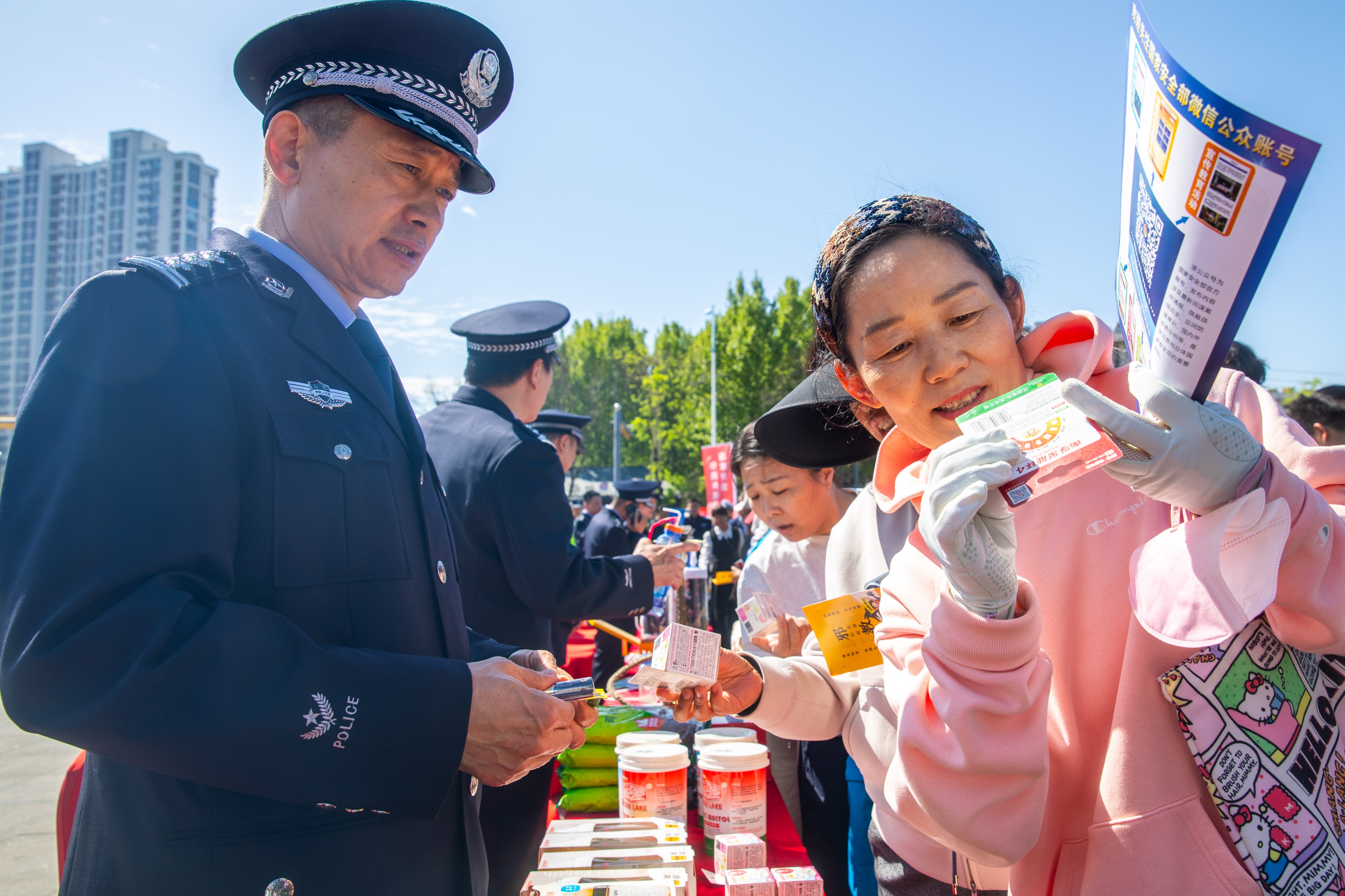 4月13日,滕州市公安局民警在当地龙泉广场向市民宣传国家安全相关法律法规知识。在4月15日第十一个全民国家安全教育日到来之际,滕州市公安局组织民警走向街头,开展形式多样的主题宣传活动,提高人们维护国家安全的意识。今年全民国家安全教育日的主题为“统筹发展和安全护航‘十五五’新征程”。(大众新闻记者孟令洋通讯员孙杨)