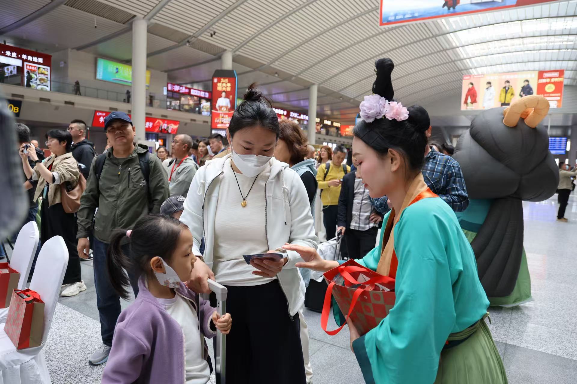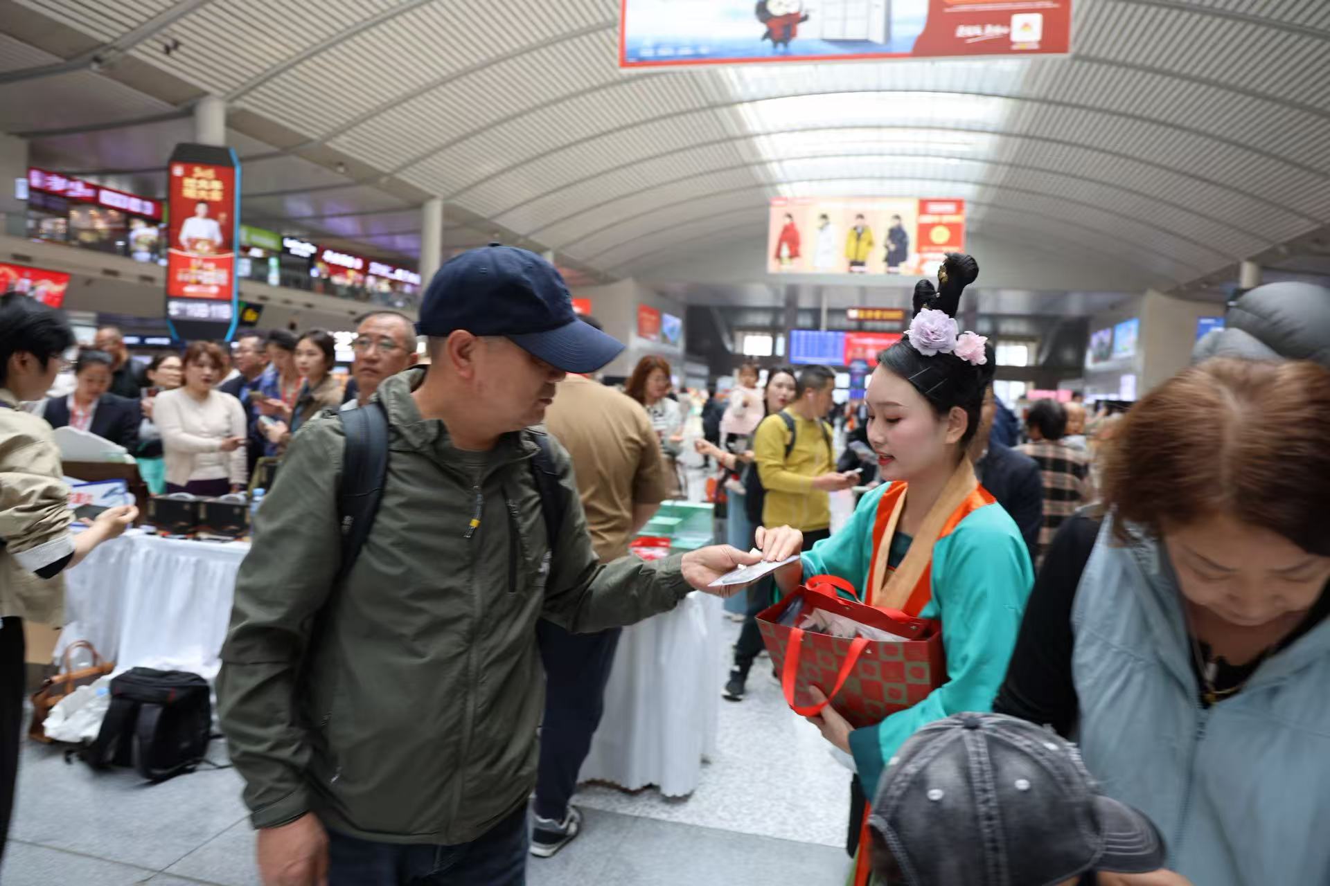 现场气氛热烈,巫山文旅集团艺术团带来长江三峡特色歌舞表演,推介官推介巫山核心文旅资源,全方位展现川渝独特魅力,免费发放当地著名景点门票,山东知名书画家赠送菏泽牡丹画作和书法作品。