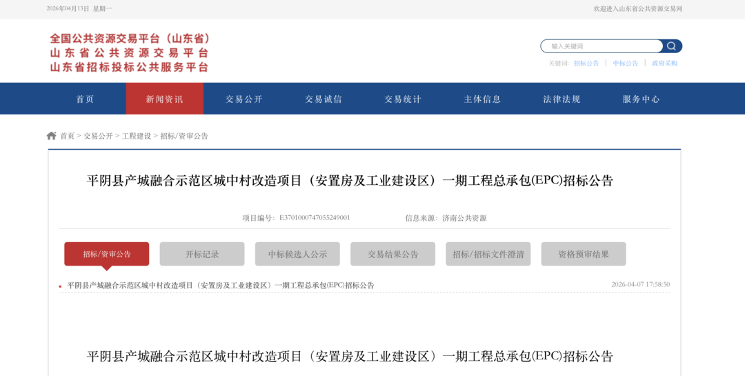 山东鸿元产业发展集团有限公司近日发布了平阴县产城融合示范区城中村改造项目(安置房及工业建设区)一期工程总承包(EPC)招标公告。