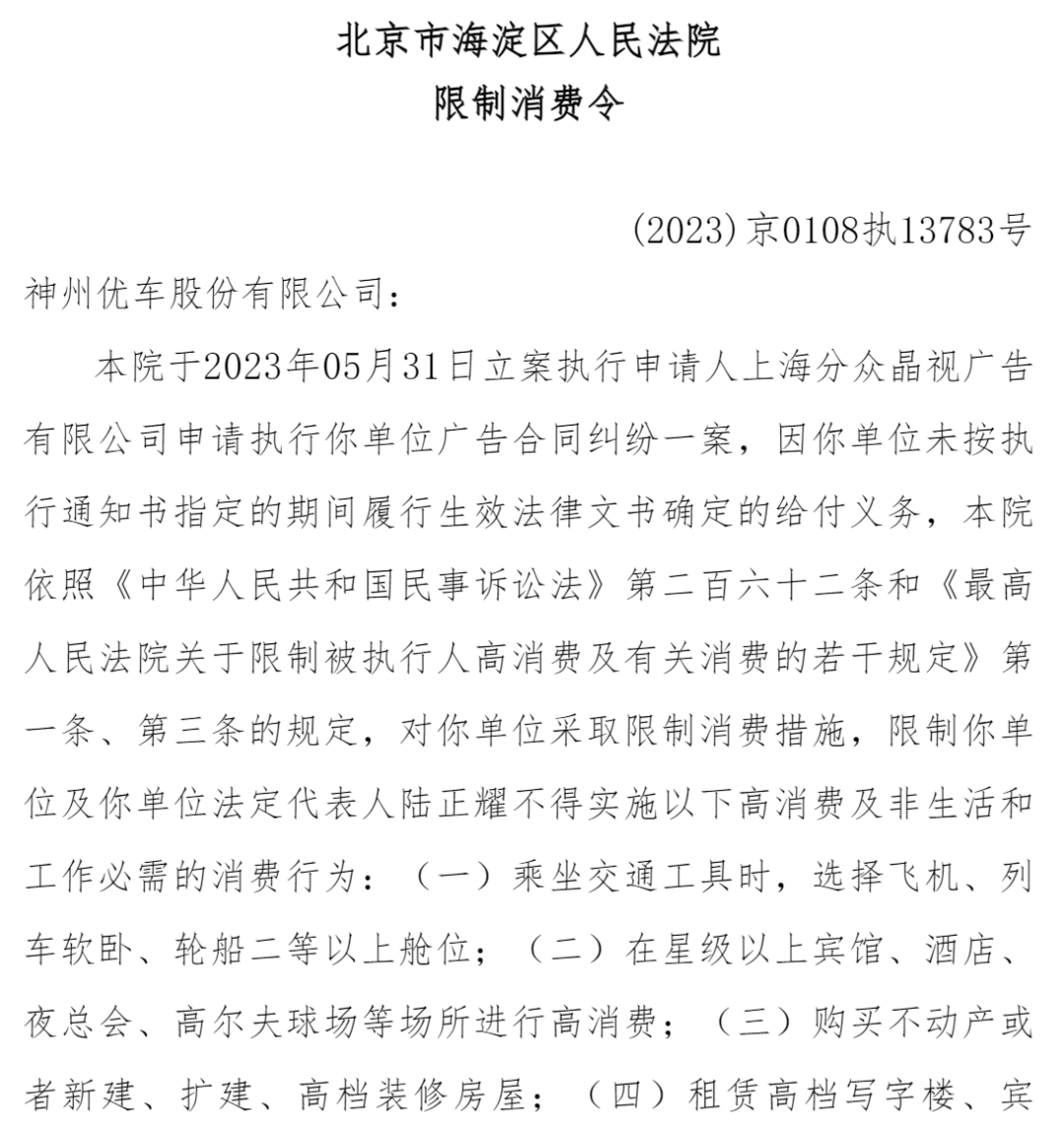 据媒体披露,陆正耀除了巨额被执行信息外,还有9条消费限制信息,终本案件未履行金额超25亿元,此外还有大量神州优车的股权被冻结。