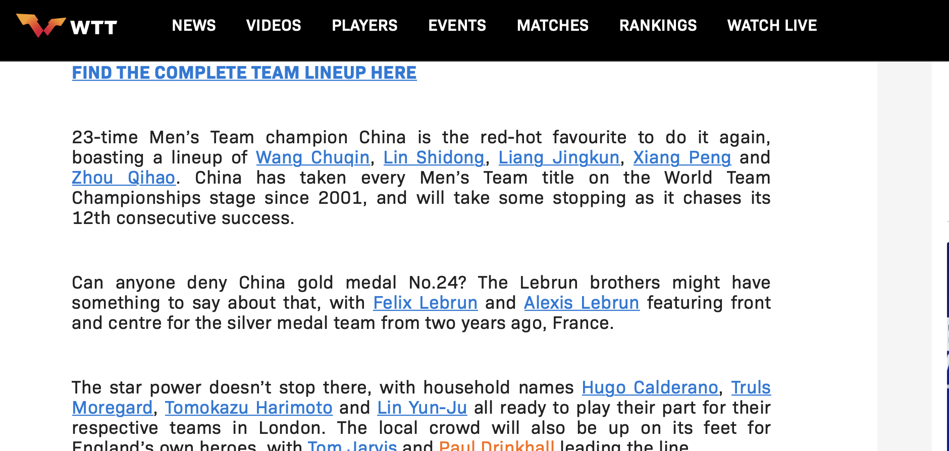 WTT官方发文预热伦敦世乒赛:谁能阻挡中国男团拿下第24冠?