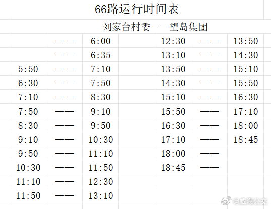 1.新开通66路:望岛集团—刘家台村委