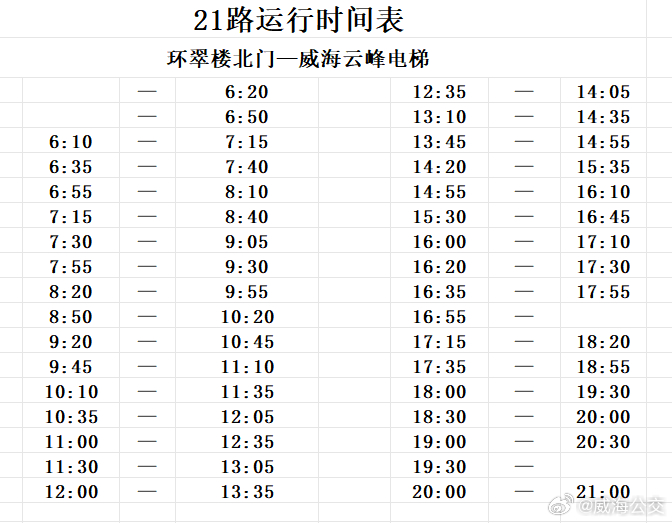 请广大市民、游客提前熟悉线路信息,合理安排出行计划。实时运营信息可查询威海公交官方App,或拨打服务电话5230950咨询。
