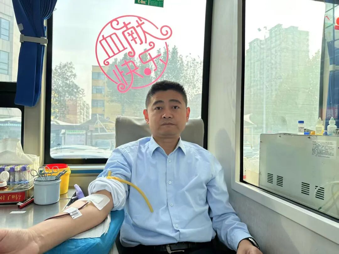 聊城市茌平区政协委员、区人民医院院长周正山参加献血活动。