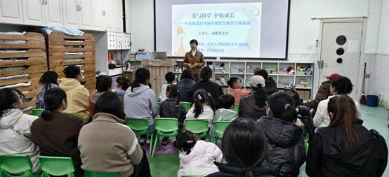 活动特邀青岛大学附属妇女儿童医院疾控科刘素琴主任及中医儿科、康复科的专家和医护人员走进台东幼儿园,围绕家长们关心的儿童健康成长核心问题,开展全方位、接地气的知识科普宣讲。针对春季气温多变、传染病高发的特点,专家重点进行春季传染病预防知识科普,详细讲解流感、手足口病、诺如病毒等儿童常见传染病的传播途径、发病症状与科学防护方法,从日常饮食卫生、居家通风消毒、户外防护、作息调理等方面,给出简单实用的预防建议,帮助家长筑牢儿童健康防护墙,有效降低春季传染病的感染风险。