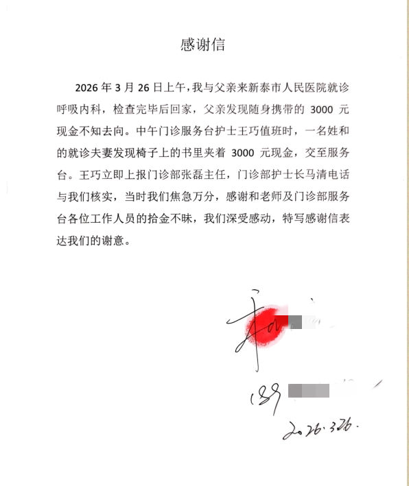 新泰市人民医院:拾金不昧显品德 医患传递暖人心