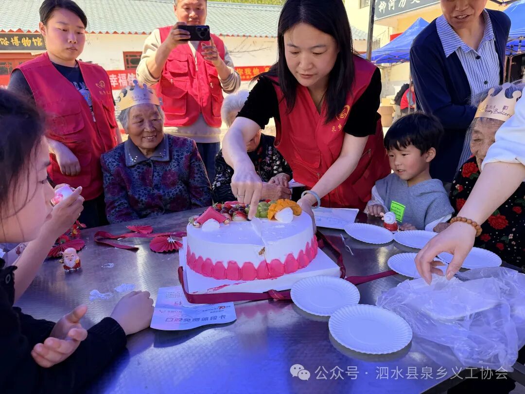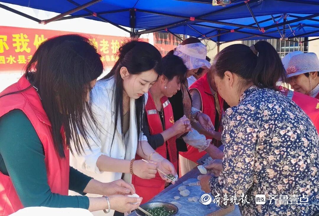 志愿者们围在一起和面、擀皮、包水饺,从食材准备到烹饪出锅,每一个环节都饱含对老人们的关爱。100多位老人围坐在一起,吃着热乎饭菜、聊着家常趣事,脸上洋溢着幸福的笑容。活动中,志愿者组织村内4月份出生的老人们,集体开展了生日宴活动。