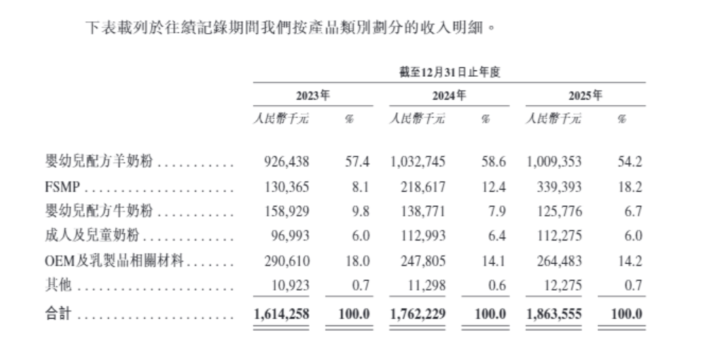 根据弗若斯特沙利文报告的数据,以2024年对应产品的零售额计,其在中国羊奶粉市场排名第二,市场份额为 14.0%;在中国婴幼儿配方羊奶粉市场排名第二,市场份额为17.6%;在中国婴幼儿FSMP市场中,排名中国本土品牌第二,市场份额为4.5%。
