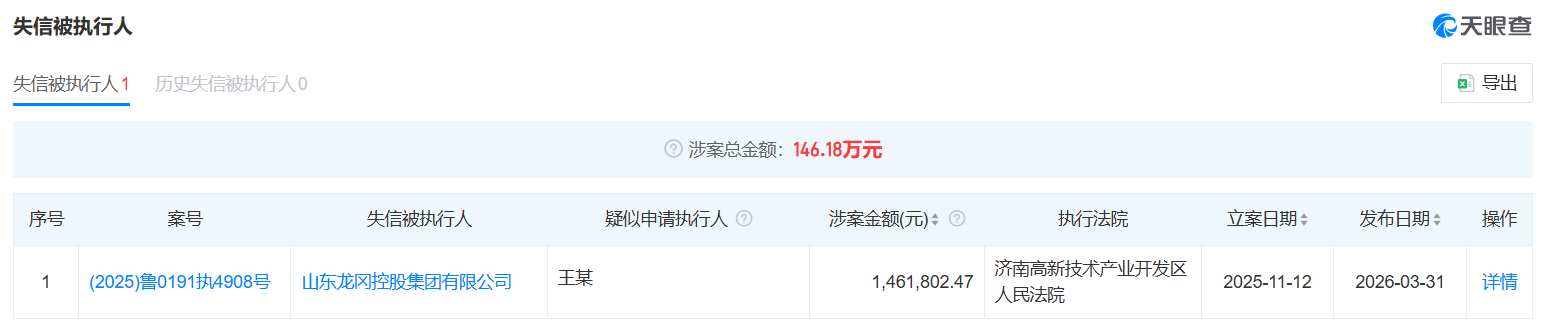 公开资料显示,张倩现任两家企业的法定代表人。其中,张倩直接持有山东龙冈控股集团有限公司 95%的股份,为该公司的实际控制人。3月31日,该 公司 被济南高新技术产业开发区人民法院列入失信被执行人名单,涉案总金额146.18万元,失信被执行人行为具体情形为“其他规避执行”,被执行人的履行情况为“全部未履行”。