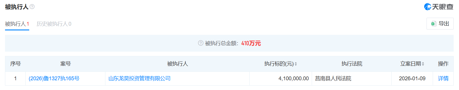 而张倩实际控制的另一家企业山东龙昊投资管理有限公司 也已成为被执行人。今年1月9日,该公司被莒南县人民法院立案执行,执行标的410万元。
