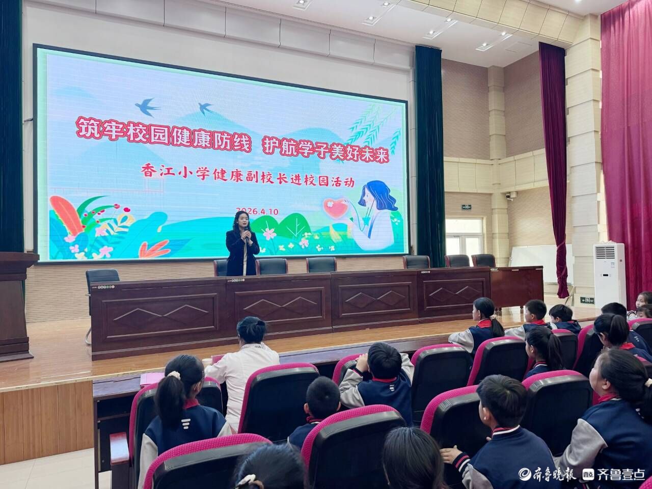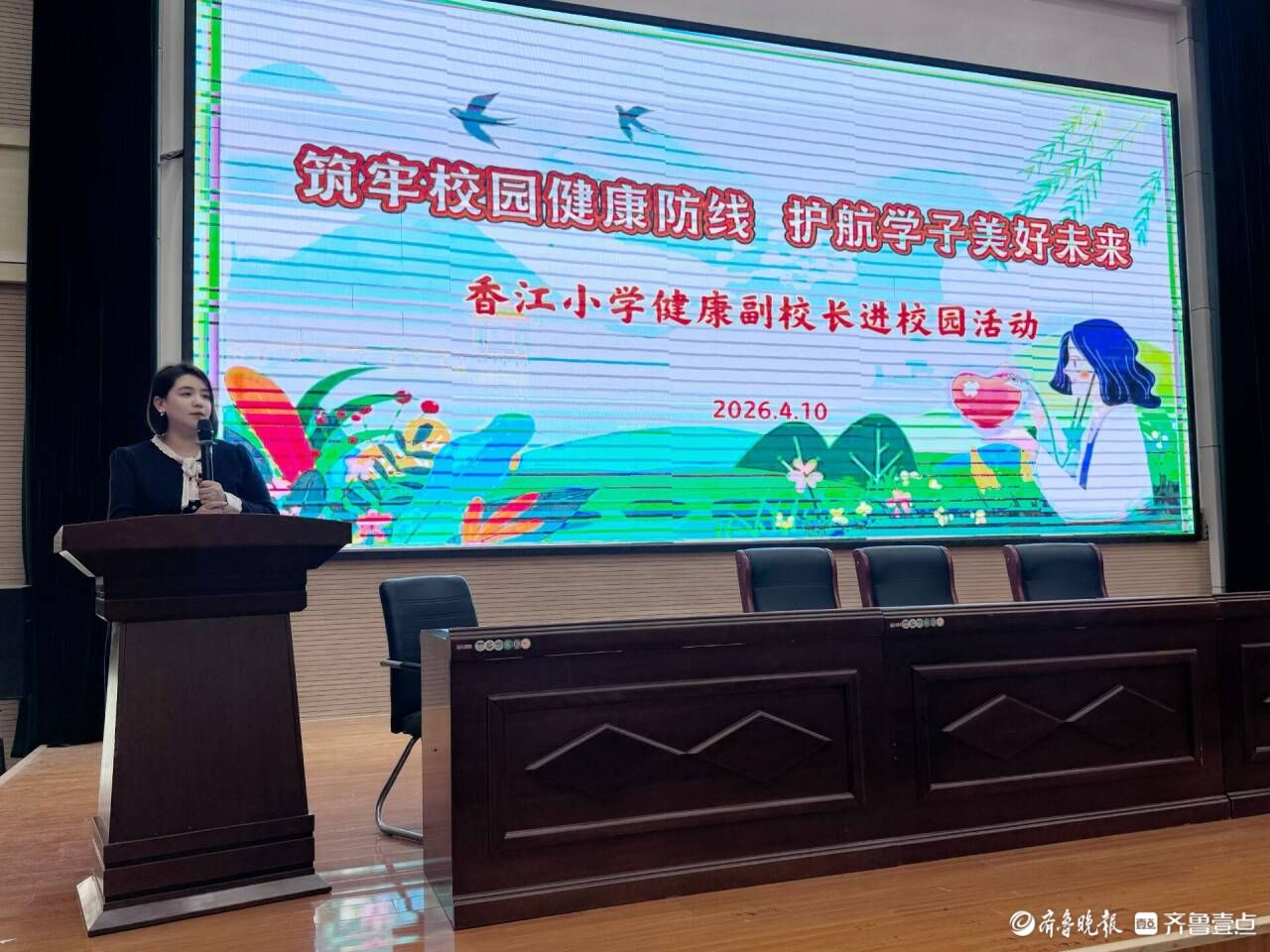 为全面提升师生健康素养,筑牢校园健康安全防线,2026年4月10日下午,东昌府区香江小学开展“健康副校长进校园”专题健康科普活动。学校特邀东昌府区妇幼保健院胡秀清主任及团队成员麻苗主治医师入校,为师生带来专业、实用的健康指导,以医校携手之力,为学子美好未来保驾护航。活动由香江小学政教处主任孙巧艺主持。