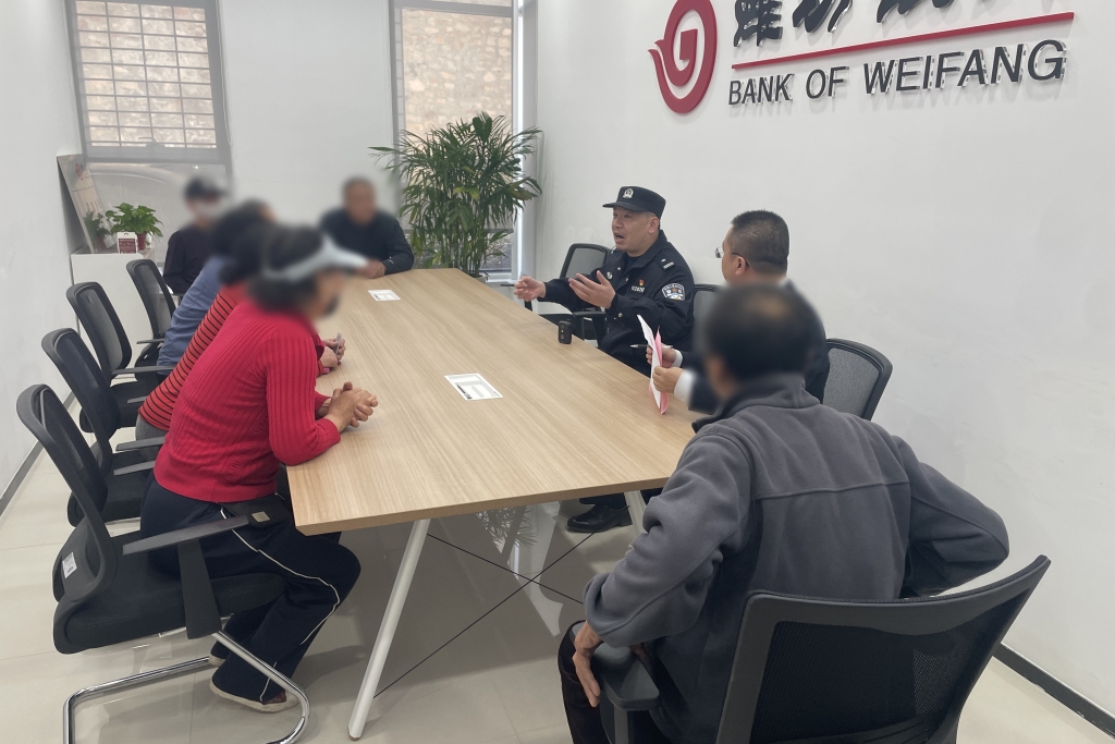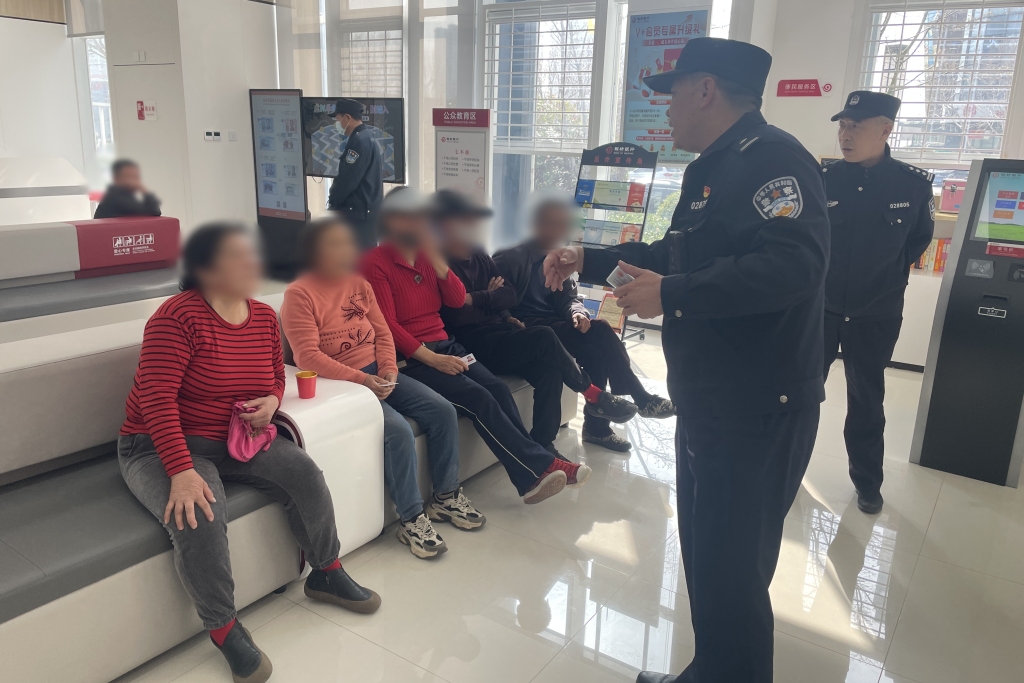 接警后,世园派出所民警迅速赶往现场,联合银行工作人员将老人带至银行会议室,进一步核实情况并开展风险宣传引导工作。在会议室里,民警用通俗易懂的语言,细致解读银行卡保管使用要求,明确指出银行卡仅限本人使用,出租、出借、出售均属违法行为,违法者将面临罚款、拘留甚至刑事责任,并留下不良信用记录;同时耐心劝导老人们,切勿因贪图小利而触犯法律,要警惕他人诱导,守好自己的银行卡和“钱袋子”。