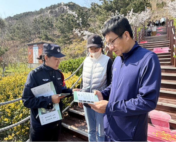 浮山森林公园作为候鸟迁徙的重要停歇地和栖息地,每年吸引大量野生鸟类在此栖息、觅食,是辖区生态保护的重要阵地。活动现场,崂山公安女子生态警务队队员们精准选址园区观景平台、步道入口、休闲区等人流密集点位,面向入园游客、周边市民开展面对面普法宣传,让生态保护理念走进群众、深入人心。