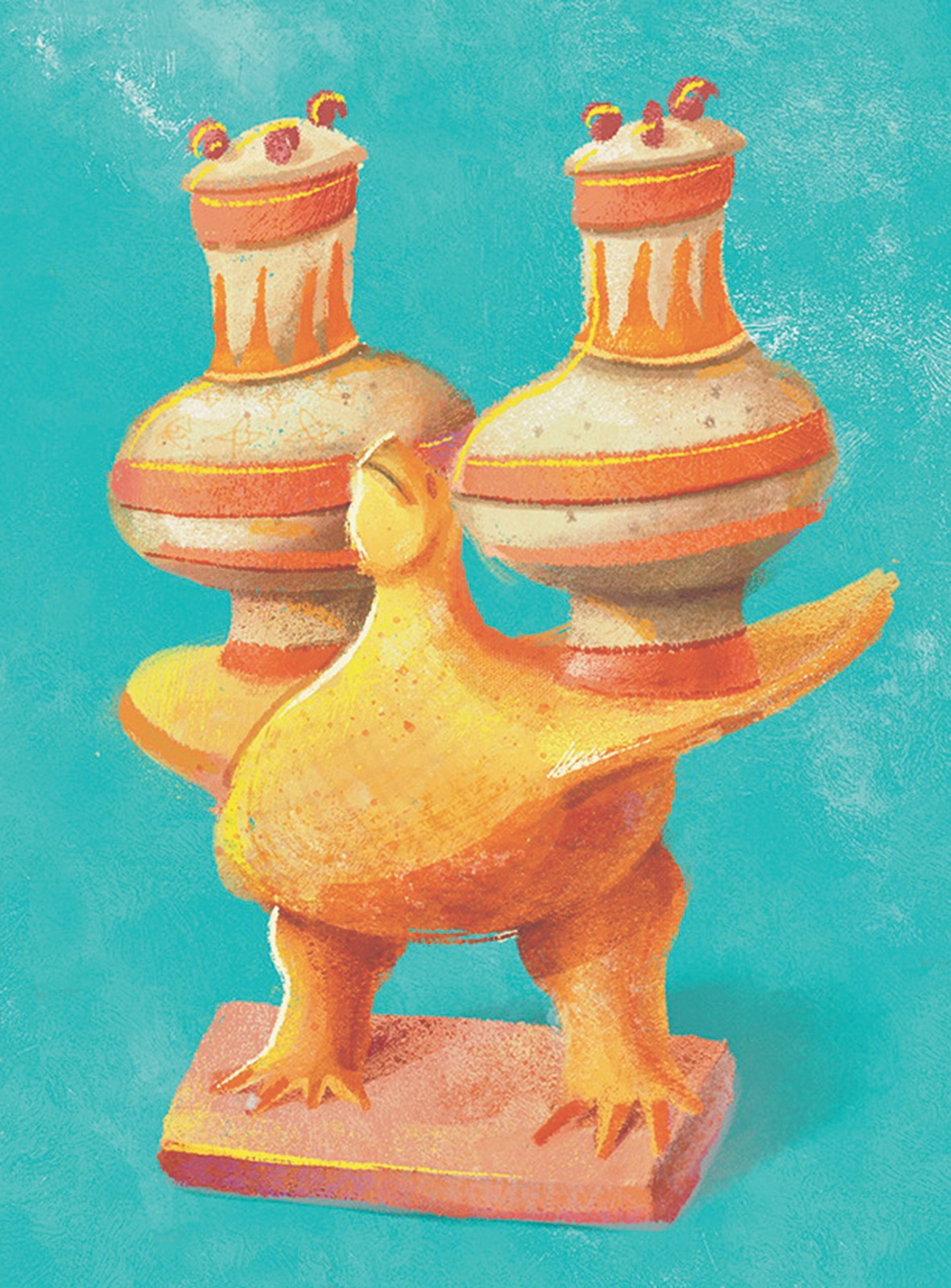 西汉彩绘负壶陶鸟(手绘)