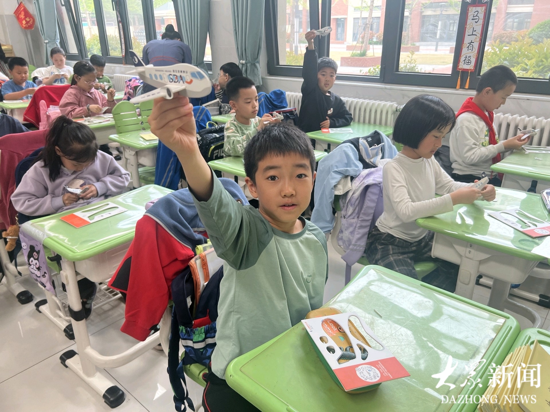 为了让孩子们更好地记住这些航空知识,乘务员还精心准备了丰富的文创小礼物,活动过程中为积极回答问题的小朋友发放了山航飞机模型、插卡手工飞机、冰箱贴、小贴纸等充满航空元素的文创产品。孩子们捧着自己赢得的小礼物,脸上洋溢着满满的成就感与喜悦,教室里欢声笑语不断。