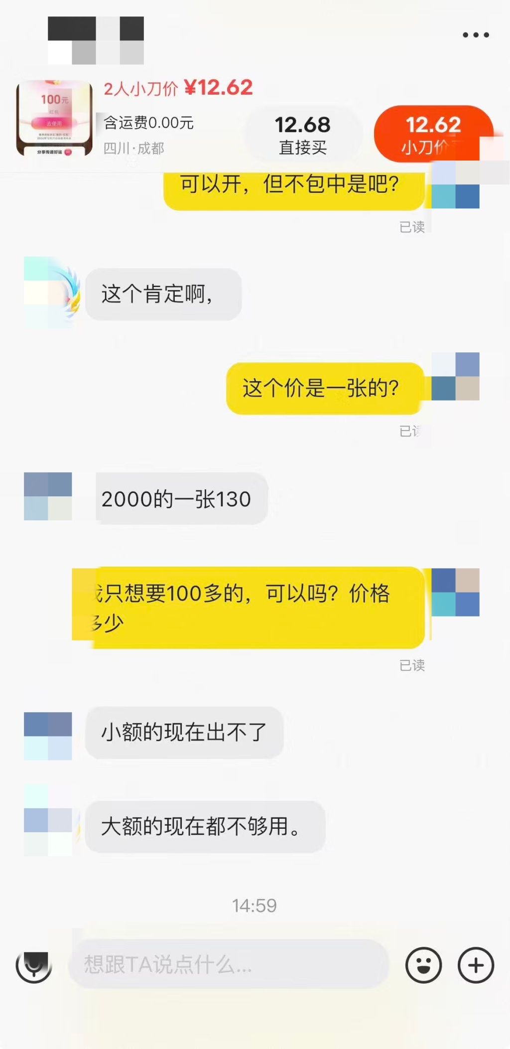 除了违规存在参赛名额等情况外,因近期发票抽奖活动火热,在闲鱼APP上也有出售发票的情况。记者询问了其中一位卖家,他表示一张2000元的发票收费130元。“小额的出不了,大额的现在都不够用。”该卖家表示。