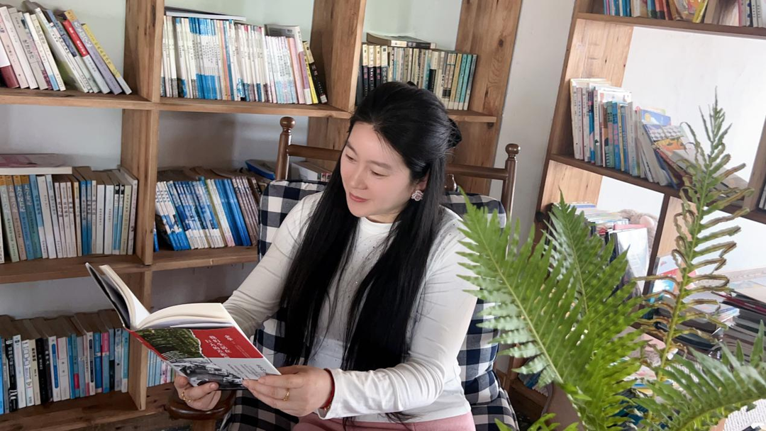 今年42岁的姜小蕾,是学校小学部教导处副主任,执教语文18年的她钟爱古典文化。在师生记忆里,她常年身着新中式服饰,齐腰长发挽配素雅发簪,温婉雅致的模样如同从诗词中走来。“没流行的时候我就爱穿新中式,长发配发簪是最爱的搭配。”姜小蕾说,这份对长发的珍爱,却在10年前因一档节目改变。