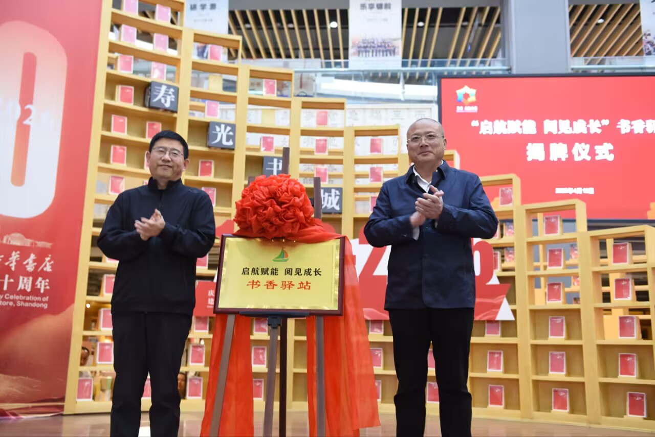仪式现场亮点纷呈、书香融融。寿光市委组织部、市直机关工委负责人共同为“启航赋能 阅见成长”书香驿站揭牌,进一步延伸阅读服务触角;市教体局、文旅局负责人为第二届“新华杯”研学征文优秀单位颁奖,激励广大青少年以文润心、以学赋能。寿光新华书店青年职工代表深情讲述书店八十年发展历程,向八十年历程见证者赠书致意,传承书香初心、续写文化使命。与会人员共同参观“历经辉煌·书香致远”新华书店80周年图片展,回顾八十年文化坚守;名师公益大讲堂首场讲座《汉字里的家族故事》同步开讲,为市民带来一场精彩的文化盛宴。