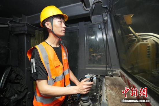 3月30日,建设者在操作三臂凿岩台车。