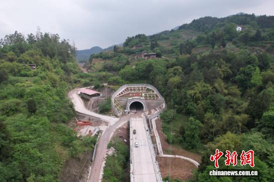 4月12日,随着长岭岗隧道顺利贯通,新建重庆至万州高速铁路(简称“渝万高铁”)56座隧道全部贯通。长岭岗隧道是渝万高铁全线最长的Ⅰ级高风险隧道,途经重庆市巴南区、涪陵区。渝万高铁是中国“八纵八横”高速铁路主通道京昆、包海通道的重要组成部分,是沿江高铁通道的重要补充,线路正线全长251公里,设计时速350公里,该项目建成通车后,将进一步加强渝东北三峡库区城镇群和重庆主城都市区之间的联系。图为4月12日拍摄的长岭岗隧道出口。(无人机照片)