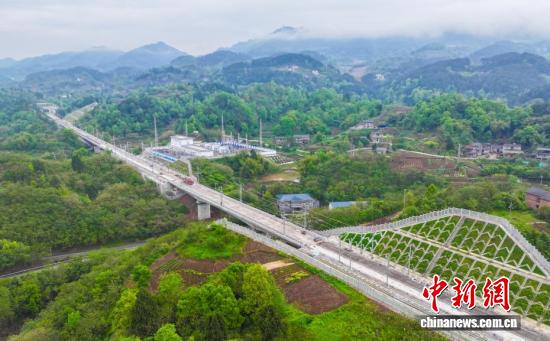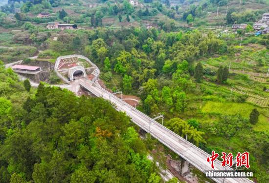 3月29日,航拍渝万高铁长岭岗隧道一处洞口。(无人机照片)